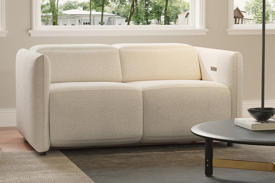 Introducing the Alexandra sofa, a modern reinterpretation of the traditional recliner, now enhanced with both Zero Gravity technology for unparalleled relaxation and Zero Wall capabilities for efficient space utilization. It combines comfort with a design that is both sleek and contemporary. The sofa features a shelter back, slim arms, and tight cushioning, creating a sleek silhouette while ensuring a comfortable seating experience. The Alexandra excels in leisure, offering various lounging positions thanks to its independently operating back and footrest, including a Zero Gravity position where the feet are elevated above the heart to reduce stress and improve circulation. Moreover, its Zero Wall design allows the sofa to recline fully without needing to be placed far from the wall, making it perfect for compact living spaces. The control buttons are smartly hidden on the inner side of each arm, preserving the sofa's clean and modern look.