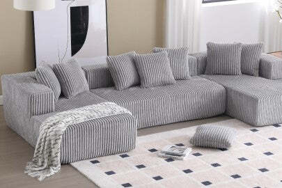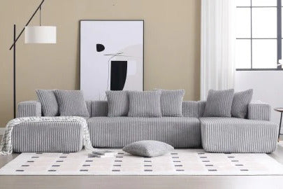 Transform your living space with the Alexus Corduroy Fabric Sectional Sofa. Upholstered in premium corduroy, it offers a soft touch and ultimate comfort. The elegant design complements any décor. Sink into the plush, high-density pure sponge cushions for unmatched relaxation. Cleaning is effortless with removable cushion covers, and assembly is a breeze. When you open it, it is normal for there to be wrinkles, collapse, etc. Please wait patiently for 24-72 hours and it will return to normal state. Experience style and comfort with the Alexus Sectional Sofa.
