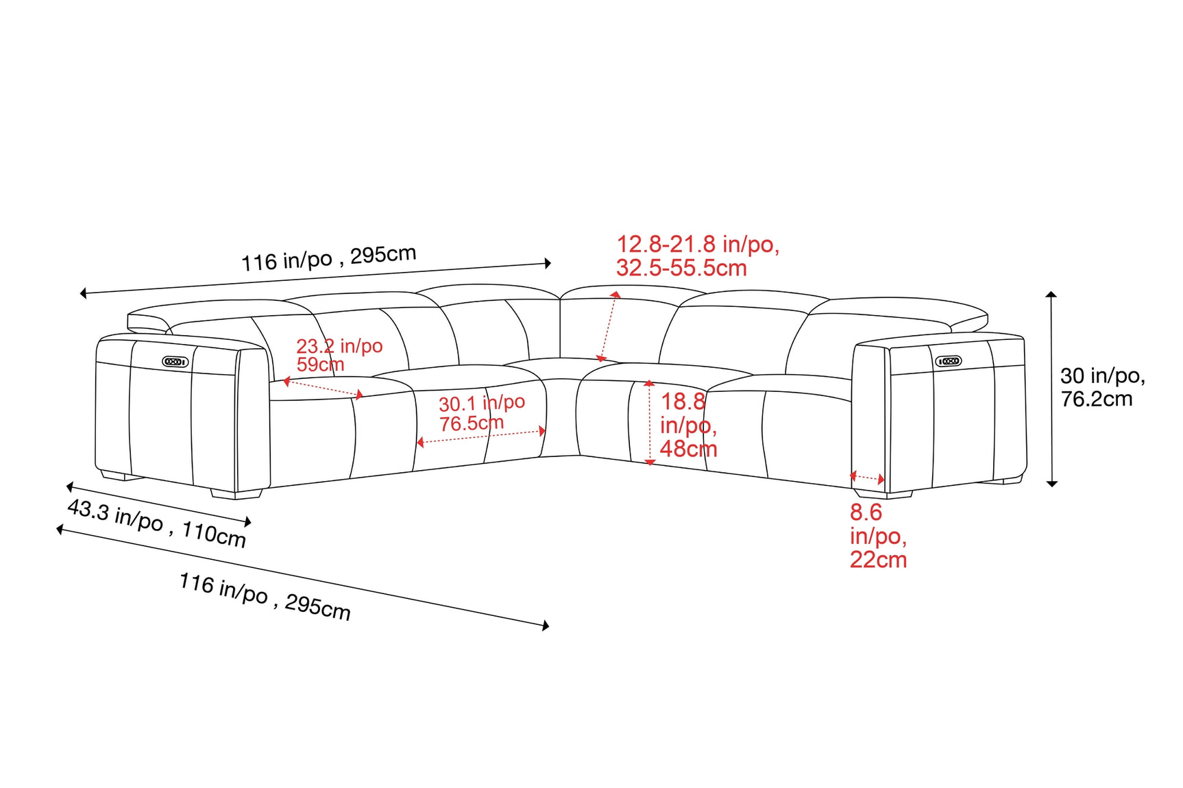 Experience unrivaled comfort with the Carmen Leather Modular Electric Reclining L-shape Sofa. Its gracefully curving armrests and supportive backrests promise indulgent relaxation, while the electric headrests and footrests offer personalized comfort at your command. Wrapped in premium Italian Nappa 11000 Top Grain Leather upholstery, it adds an opulent touch to your living space. Elevate your lounging experience with Carmen, where the intersection of luxury and functionality is truly exceptional.
