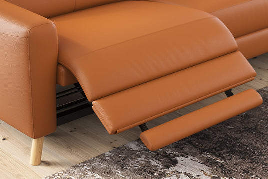 Introducing the Elodie Leather Recliner, where style meets innovation and comfort. Crafted from supple Italian Nappa 11000 Top Grain Leather, this contemporary piece boasts both elegance and practicality. Dive into relaxation with an adjustable manual headrest and seamless electric recliner discreetly nestled within the sleek design. Engineered with an upscale Kiln-Dried Hardwood frame and light timber legs, it combines style and stability. Enjoy ultimate comfort with a supportive base suspension, high-density cushions, and convenient USB charger controls, granting individual adjustments for reclining and headrests. Experience sophistication and indulgence at its finest with the Elodie Leather Collection.
