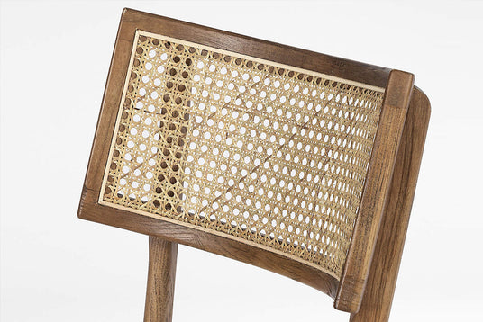 - Textured Cane Inlay: A distinctive cane inlay adorns the gently curved back, adding an organic touch and enhancing the chair's visual appeal with its natural texture.
