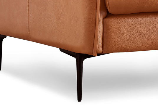 Handcrafted Italian top grain Nappa leather 11000 all over, Jasper Leather Sofa has an eye-catching silhouette that’s the perfect mix of class and comfort. It provides a generously deep seat and invitingly plush cushions for cozy, snuggle-worthy comfort. The wooden frame lends unwavering strength, and the steel metal legs create the illusion of floating. Jasper Leather sofa is the sophisticated soft-lines and bold-stance seating selection for the modernist home.