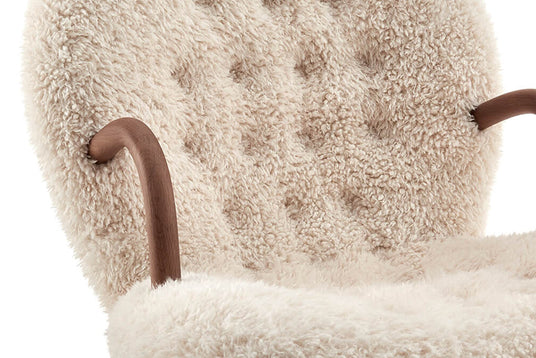 Introducing the Nova Accent Chair, the epitome of elegance and comfort. Its signature rounded arms, club-shaped legs, and gently curved backrest redefine sophistication. Wrapped in luxurious faux sheepskin upholstery, it exudes opulence, perfect for any space. Crafted with a sturdy frame made of solid wood, finished with a rich walnut stain, it adds warmth and sophistication to your decor. Rest assured that the faux sheepskin upholstery offers both style and peace of mind with its non-toxic, fire-resistant properties. Best of all, your Nova Accent Chair arrives fully assembled, seamlessly integrating into your home decor. Elevate your space with a piece that effortlessly blends style and comfort.