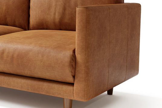 Introducing the Toulon Leather Sofa - Where Timeless Cool Meets Ultimate Comfort. Crafted with a corner-blocked wooden frame, the Toulon Sofa promises sturdiness that stands the test of time. Made with Italian Nappa 11000 Top Grain Leather that's buffed for a soft touch and left untreated for an authentic natural appearance, the Toulon Sofa is a testament to uncompromising quality. The high-resiliency foam core wrapped in a fiber-down blend of the seat cushions offers unmatched coziness, while the fiber-down blend back cushions ensure optimal support.