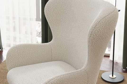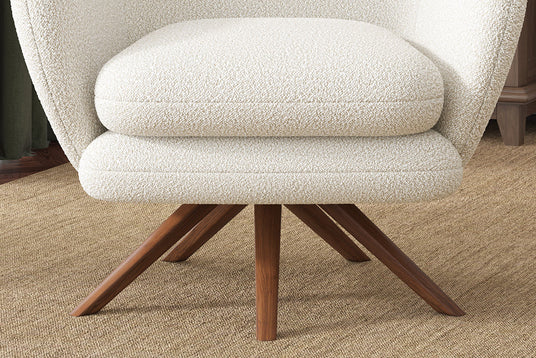 Introducing the Winston Accent Chair - a seamless fusion of Danish design and mid-century flair. Crafted with kiln-dried hardwood, its durable frame perfectly complements the plush upholstery, exuding elegance. Experience unparalleled comfort with a 360° Swivel Mechanism and plush high-resiliency seat cushions, wrapped in a feather-down blend. The solid walnut legs, finished in a warm tone, add a touch of sophistication. Elevate any space with expressive lines, an exaggerated wingback, and rounded armrests, redefining classic charm with modern allure. Indulge in both style and comfort - bring home the Winston chair today!
